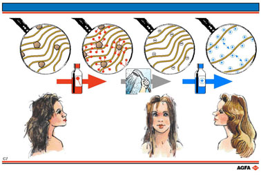 如果再用阳离子(即带正电荷)湿润剂护发,头发就会吸附阳离子润湿剂,带上大量正电荷。头发吹干后,由于根根头发都带有正电荷而互相排斥,所以头发就会变得蓬松。