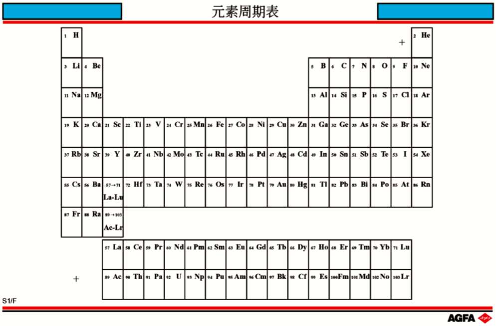 在S系列的每个主题中,我们会将图S1(用表格的形式表达每个元素的原子序数和元素符号)与叠合图结合使用,每张叠合图重点说明一个要点。(在S1图示的左下方和右上方有一个小十字,这可帮助教师在投影仪上正确定位叠合图。) 俄国化学家德米特里·伊凡诺维奇·门捷列夫(Dmitri Ivanovitch Mendeleev,1834~1907)奠定了元素周期表的基础。门捷列夫在俄罗斯圣彼得堡的中央师范学院开始其学术生涯,并于1857年成为那里的私人教师。后来,他在海德堡(1859~1861)和高加索工作。1867年,他在圣彼得堡成为化学教授,1869年提出元素周期表。