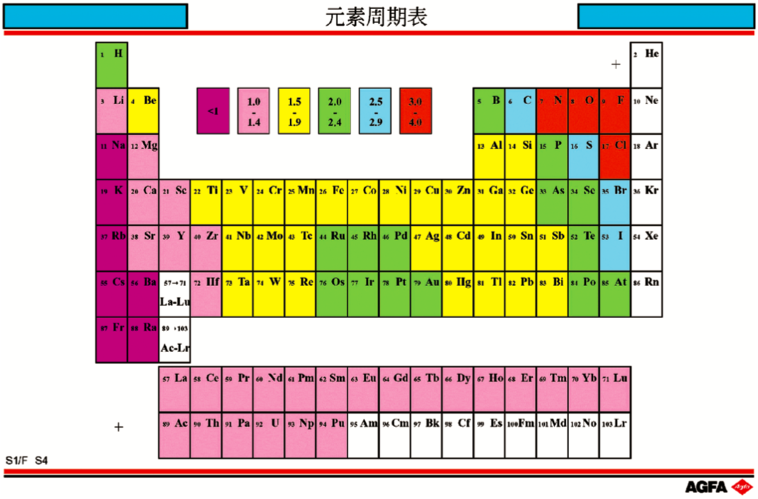 鲍林将电负性定义为“分子中单个原子吸引电子,使其偏向自己的能力”。在叠合图S3中列出了根据鲍林的方法估计出的元素电负性数据[见参考书目(1)、(2)]。