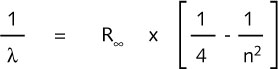 式中, 为里德堡(Rydberg)常数。当指定n分别取值3,4,5,6,⋯⋯时,每条光谱线的波长都可由公式得到。整数n称为主量子数。