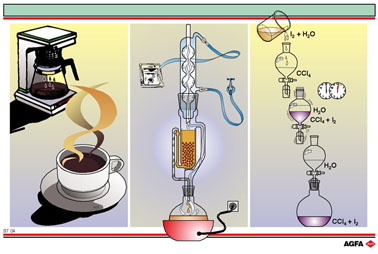 图的左边是一只咖啡壶。这就是一种萃取技术——把一种适当的溶剂(热水,即萃取剂)加到固体混合物(磨碎的咖啡豆)中,以溶解一种或几种混合物成分。