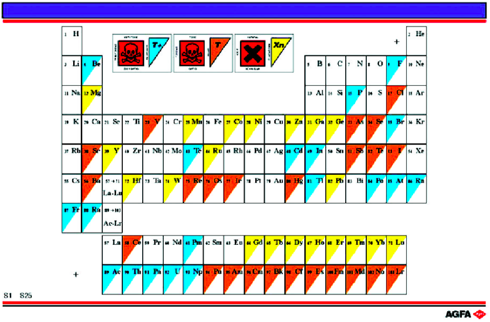 可以看到,图S26中每个格子只有一半有颜色,这样做的目的是可以将此图与图S26叠在一起投影。用这种方法可以说明,这些列为有害的元素或有毒的元素也是生命体新陈代谢所必需的元素。